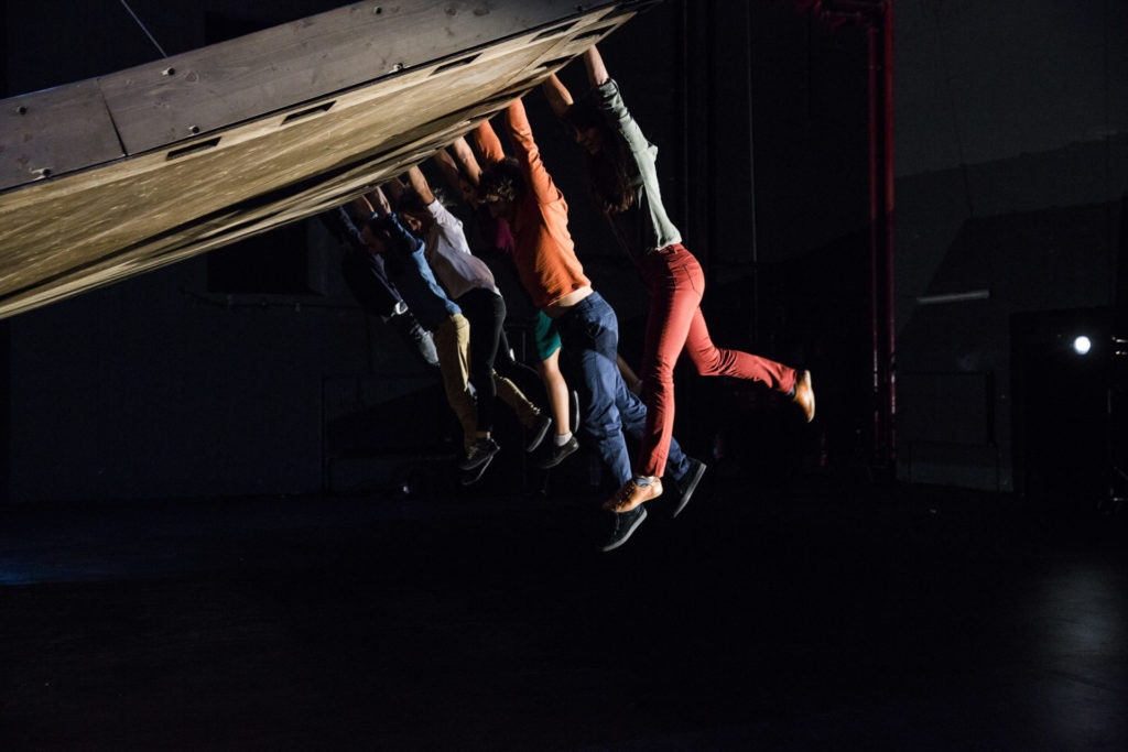 Conception, scénographie et direction artistique : Yoann Bourgeois – Avec Marie Bourgeois, Agnès Canova, Julien Cramillet, Kerem Gelebek, Jean-Yves Phuong et Sarah Silverblatt-Buser – Assistante artistique durant la création : Marie Fonte – Création lumières : Adèle Grépinet – Création son : Antoine Garry – Travail vocal : Caroline Blanpied, Natalie Pérez et Jean-Baptiste Veyret-Logerias – Création costumes : Ginette / Sigolène Petey – Régie générale : Julien Soulatre – Régie lumières : Julien Louisgrand – Régie son : Tania Volke – Régie plateau : Etienne Debraux – Maitrise d’œuvre et construction scénique : Ateliers de la Maison de la Culture de Bourges, Pierre Robelin, Cénic Constructions et Nicolas Picot (C3 Sud Est).