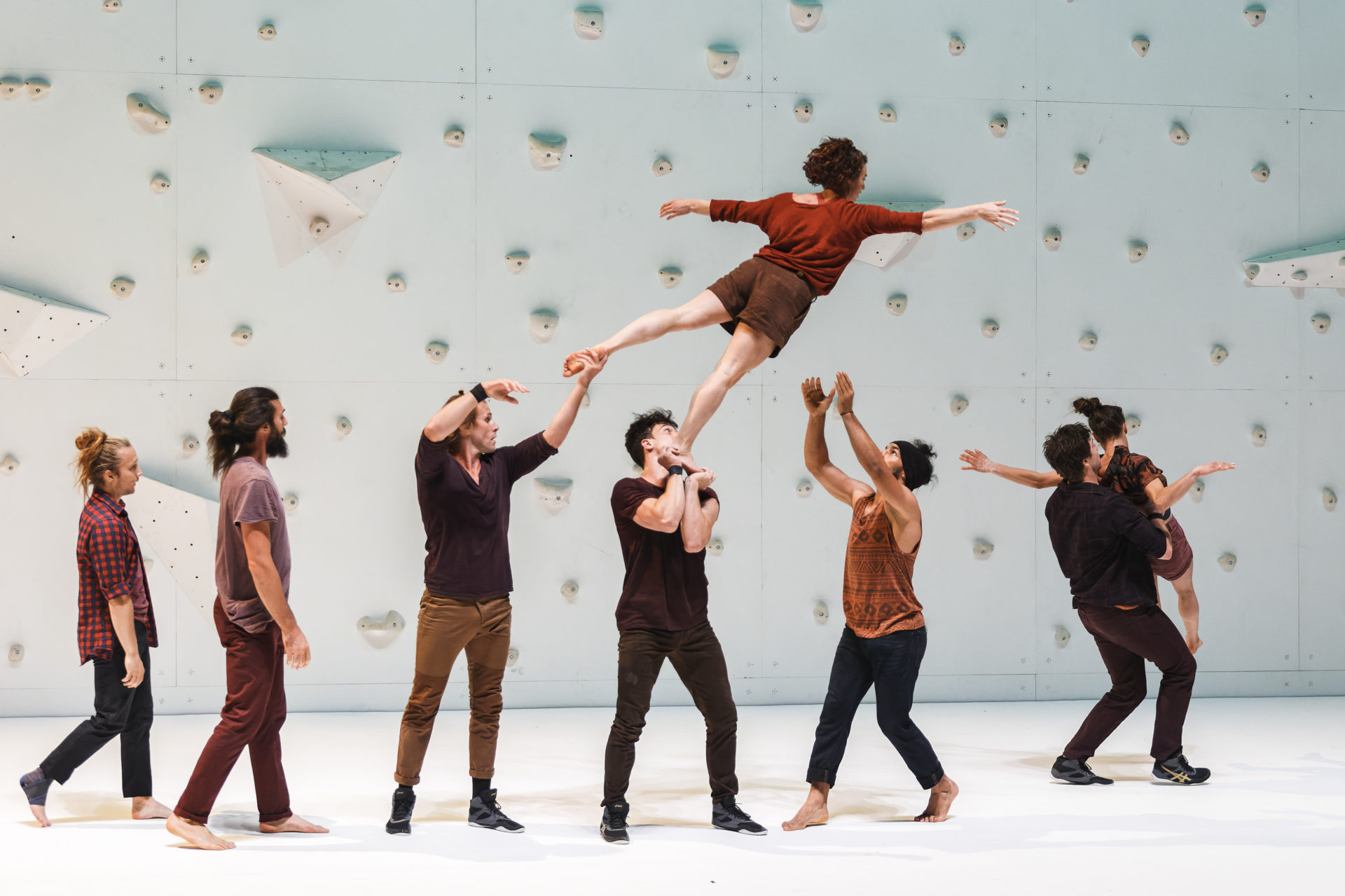 Qu’est-ce qui pousse un être humain à défier la gravité, quitte à prendre des risques incommensurables ? À aller toujours plus haut, ressentir l’ivresse des cimes, malgré la peur du vide ? À trop vouloir s’approcher du soleil, on finit par se bruler les ailes. Corps extrêmes est une expérience vertigineuse pour laquelle le chorégraphe français Rachid Ouramdane convie deux adeptes emblématiques des pratiques extrêmes, le highliner Nathan Paulin et une grimpeuse d’exception. Si proches de l’envol et entourés de huit danseurs et danseuses, ils nous offrent une performance hybride et saisissante.