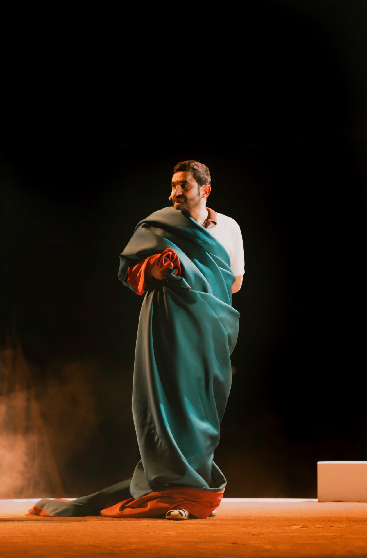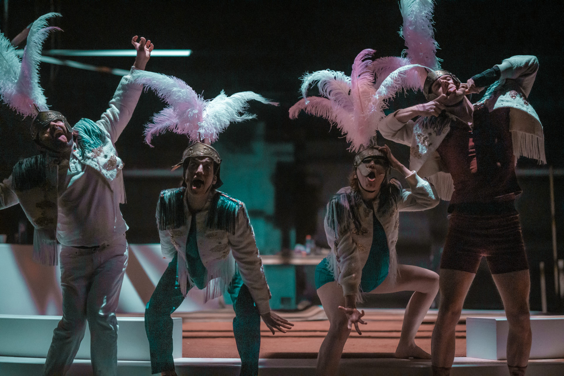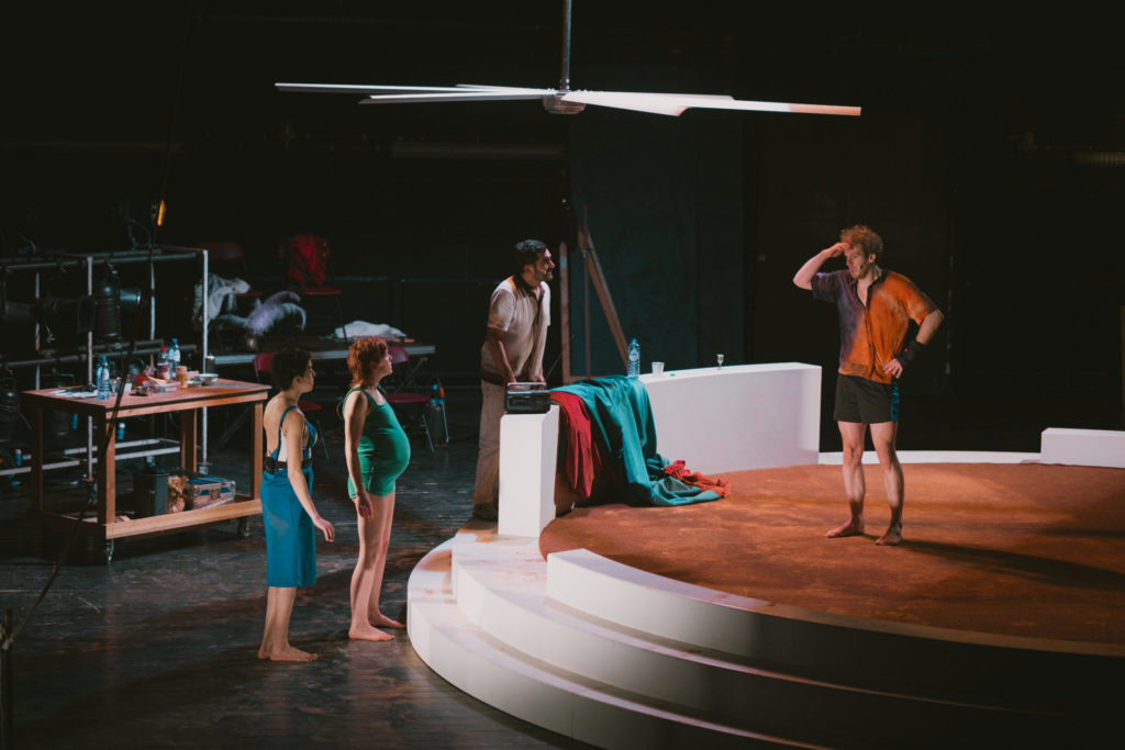 Pour sa deuxième création, la metteuse en scène Héloïse Ravet s’approprie cette intrigue universelle, actualisée grâce à la place centrale attribuée à la figure de Jocaste dont la parole est enfin restituée, sous les traits de Christina. Au centre d’une scénographie qui évoque à la fois le théâtre de tréteaux et les arènes de corrida, quatre excellents comédiens et comédiennes déploient un registre extrêmement physique et varié.