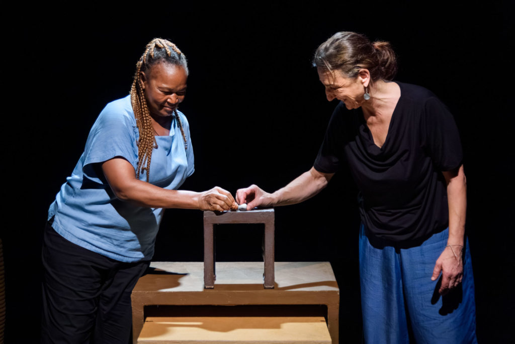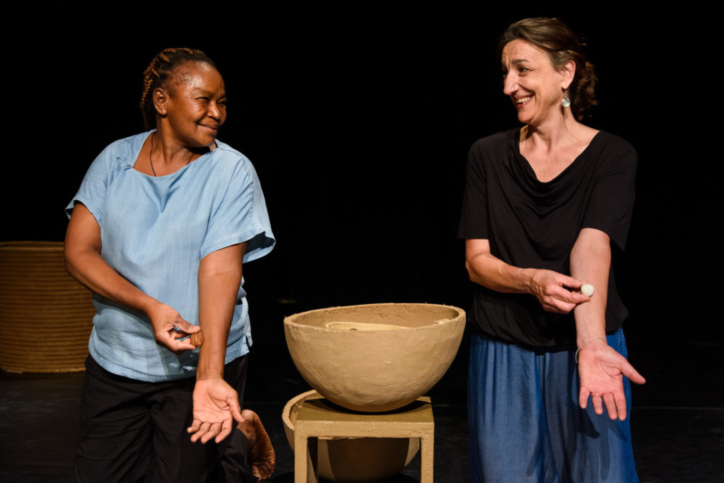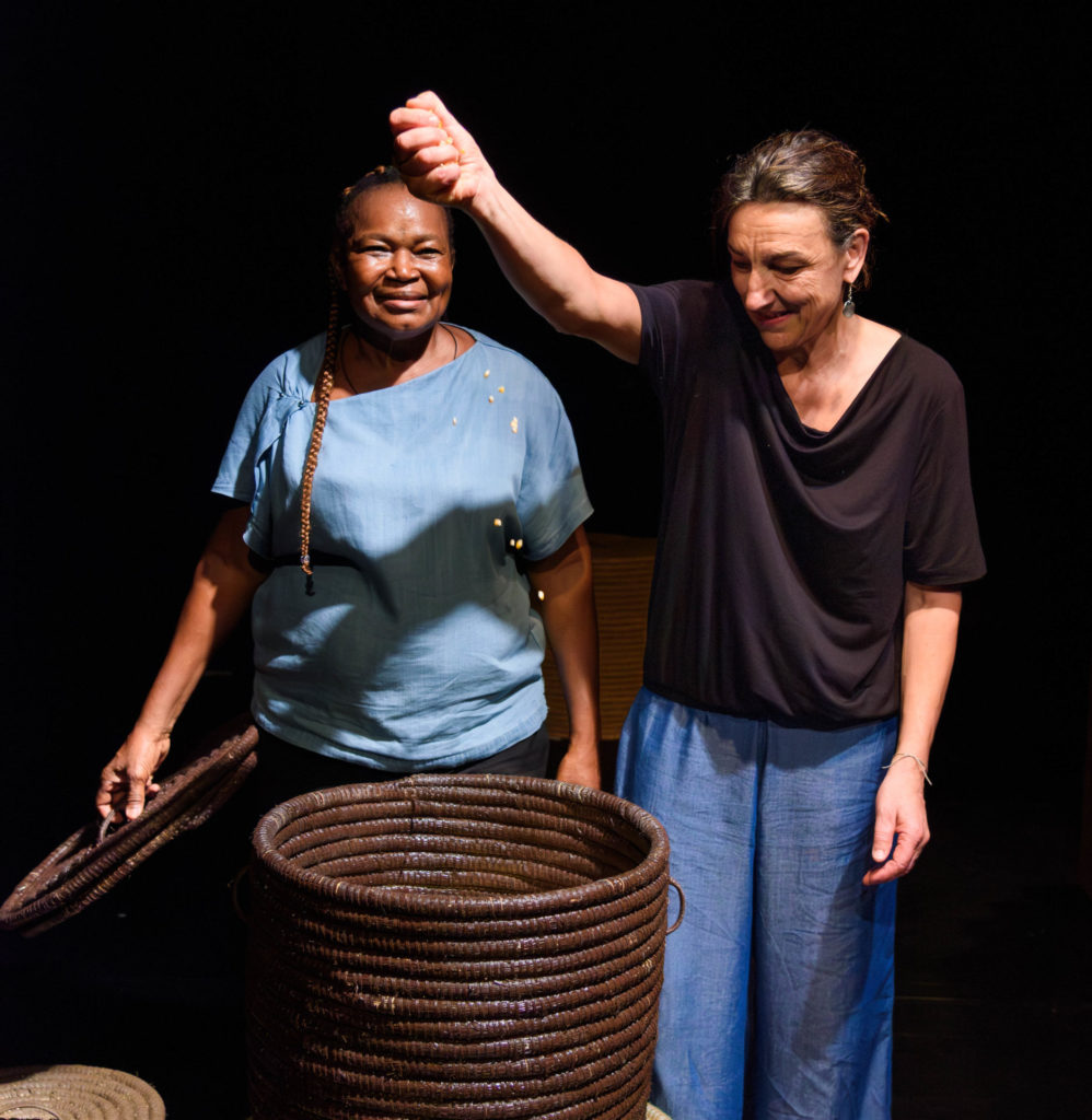 Mise en scène : Edoxi Lionelle Gnoula et Gaëtane Reginster – Avec Marie-Odile Dupuis et Halimata Nikiema – Dramaturgie : Marie-Odile Dupuis, Edoxi Lionelle Gnoula et Gaëtane Reginster – Scénographie : Aurélie Deloche – Assistanat à la scénographie : Francky Belany – Création musicale : Sina Kienou – Création lumières : François De Myttenaere et Vincent Stevens